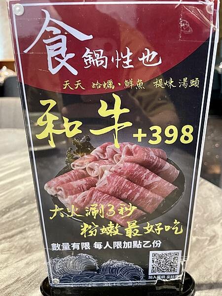 桌上還有立牌推薦期間限定的肉品