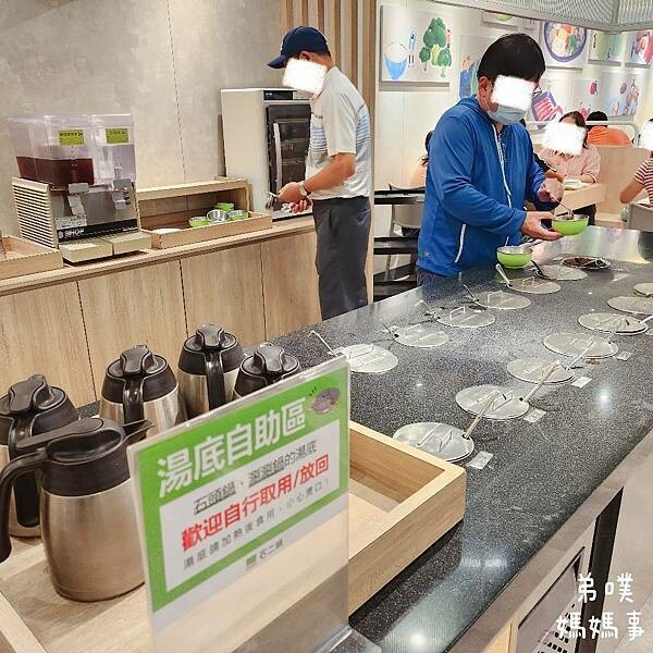 等候上菜時間,就能先來加配料、拿餐具。石二鍋分店內都有廁所。高雄鳳山店的配料是雙排的,不怕和別人取餐打結。