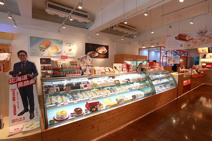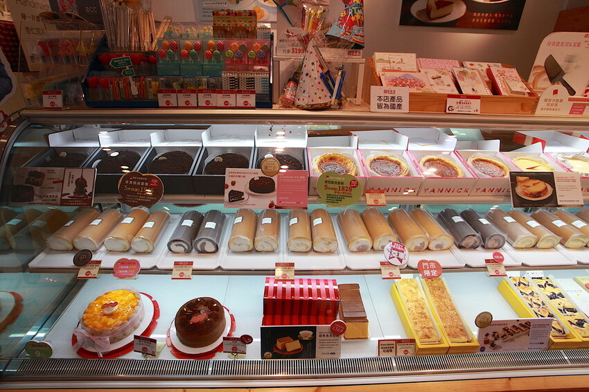 冷藏冰箱放置大量蛋糕點心供挑選,裡面一整排就是招牌生乳捲。