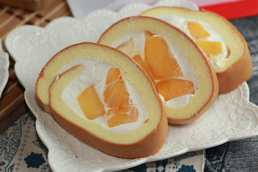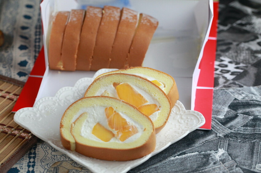 這生乳捲是由泡芙蛋糕、北海道奶霜及愛文芒果等組成,選用昭和蛋糕專用麵粉製作泡芙蛋糕,採用100%來自北海道鮮奶霜,選擇當季在欉黃愛文芒果當果肉,每個切面皆可看到愛文芒果的蹤跡,芒果控們心動不如馬上行動。