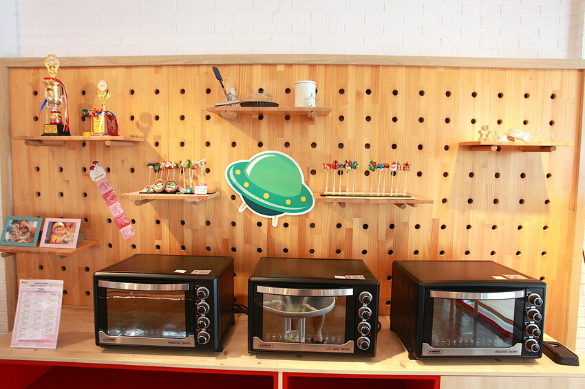這櫃子上面有放置專業烤箱供顧客使用。