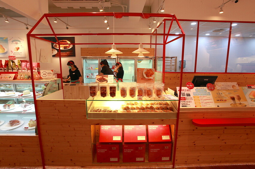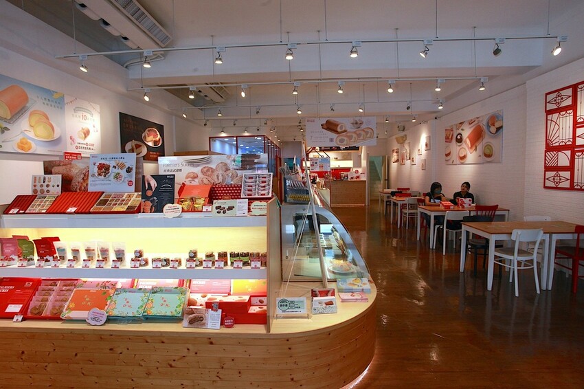 正面商品櫃有陳列常溫甜點伴手禮供選購。