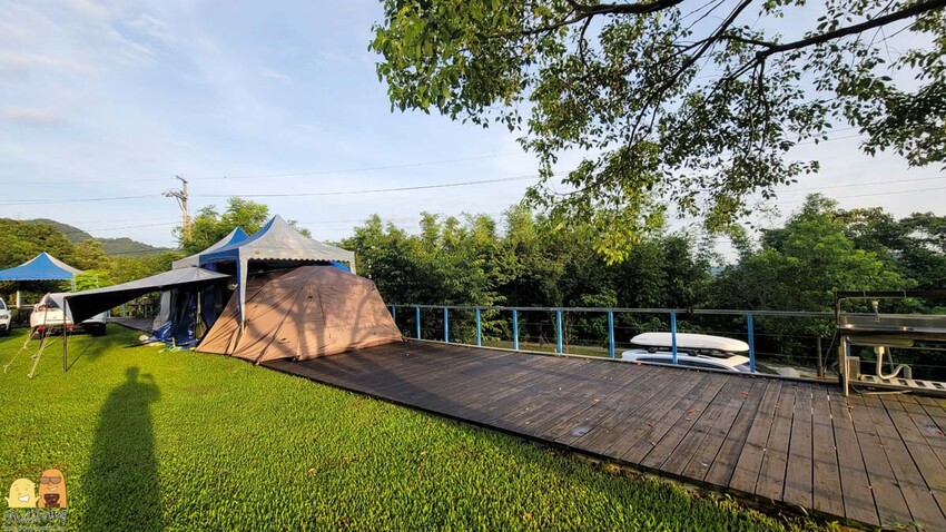 我們這次是選擇A區木棧板區,在這區營主很貼心的有提供遮陽棚可以使用,還好有這個遮陽棚要不然這次露營有很大的機會會撤帳逃跑阿~