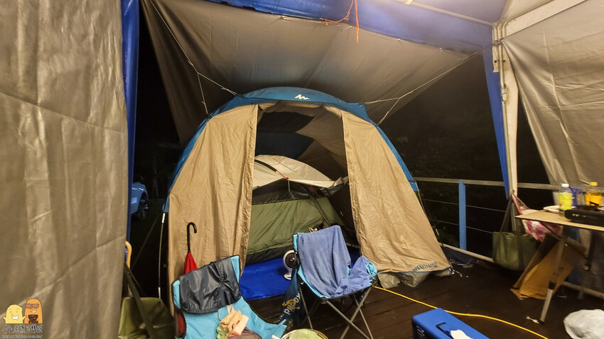 還好我們這次兩帳的遮陽棚是相鄰的,這樣我們可以將兩帳佈置再一起,可以共用一個可遮陽避雨的空間