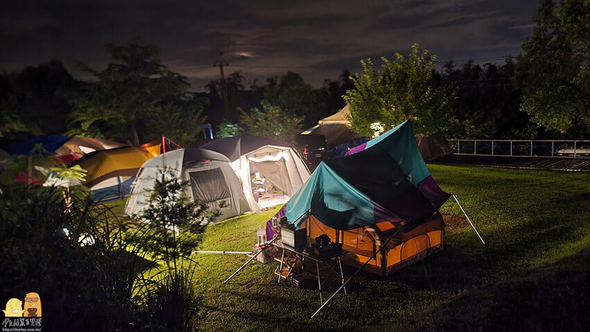 海拔高度約300公尺,擁有一大片綠油油的草地,除了一般露營場外,居然還有好幾台可以開冷氣的露營車營區