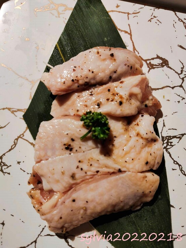 鹽松阪豬有抹油,烤起來非常的香,我還蠻喜歡的。 去骨雞腿和豬梅花就還好,(另外因為肉塊偏厚,要判斷有沒有熟我都會用筷子輕輕穿透肉,只要穿過去就是熟了,阿也是可以把它烤焦,我朋友最喜歡吃烤焦的。)