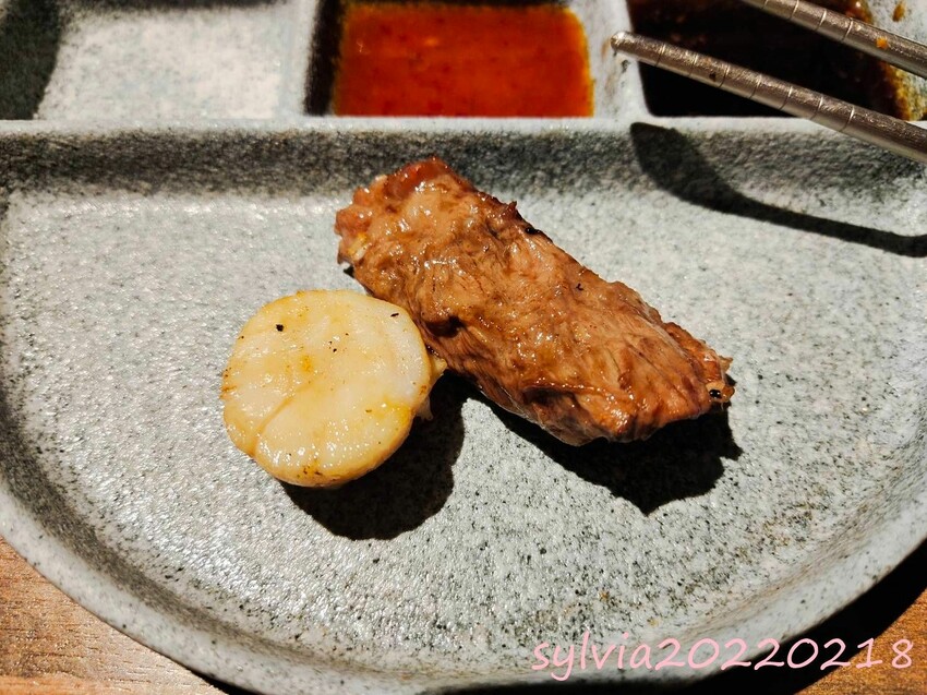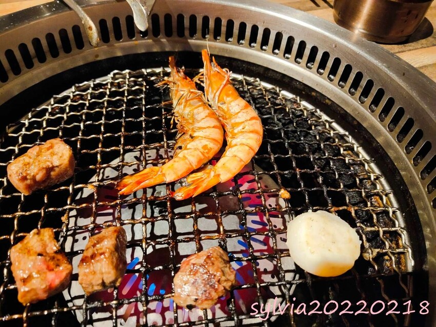 ▼套餐海鮮:草蝦、干貝雙人份的。其實我本來還蠻期待干貝的,以前都是有小盅,湯+干貝,煮完我都會喝…現在改成這樣烤完都又乾又小顆。