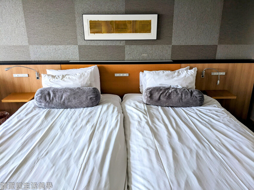 ▲房內的兩張單人床床單有點皺表面很不平整,且床墊太軟,雖然有提供兩種軟硬的枕頭,但床墊沒什麼支撐力,彈簧床是這間飯店唯一讓我覺得扣分的地方。