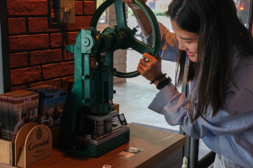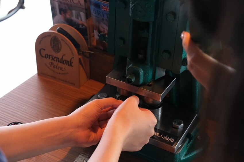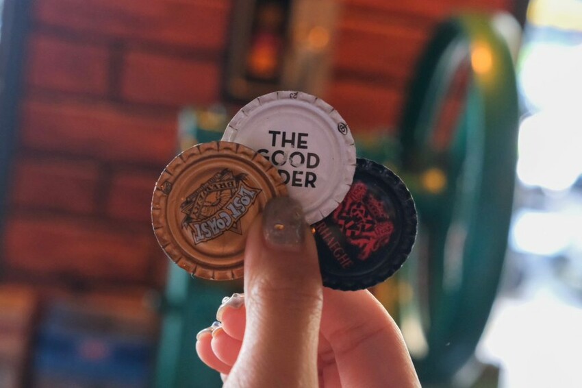 ▼【ABV地中海餐酒館 台中概念店】喝完酒的瓶蓋還可以DIY動手壓扁,每款酒的圖案都不一樣,能夠帶免費回家作為紀念~