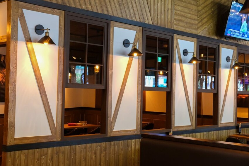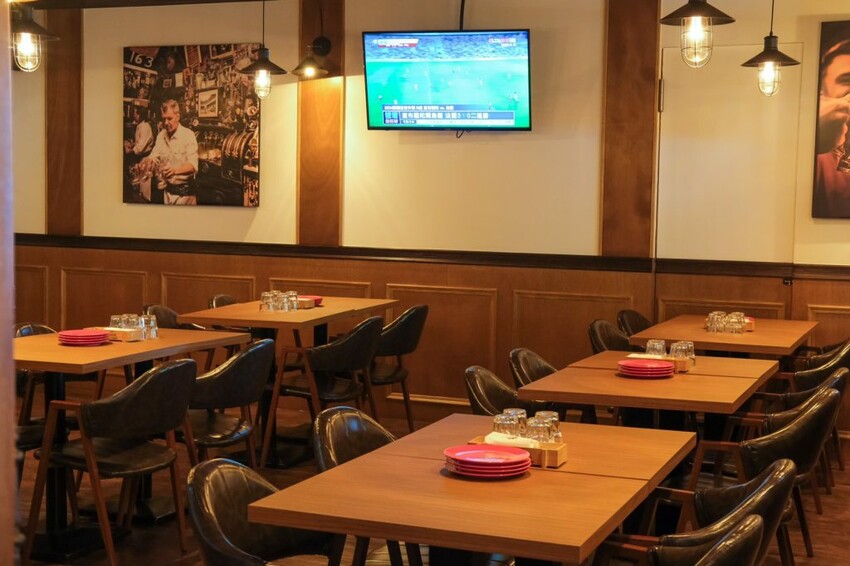 ▼【ABV地中海餐酒館 台中概念店】用餐環境佔地相當寬敞,大約可容納數百人以上,以木質調的設計搭配異國擺設小物,打造出有如地中海國家般的氛圍,每個視野都能欣賞到電視轉播賽事。