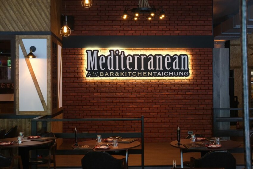 ▼【ABV地中海餐酒館 】是ABV Bar & Kitchen 餐飲集團旗下的品牌,目前在全台已有6大餐飲品牌11間分店,新開幕的台中概念店位於台中市西區臺灣大道上,大大的招牌在路上格外顯眼,鄰近勤美綠園道和SOGO百貨,開車可停放於附近的收費停車場。