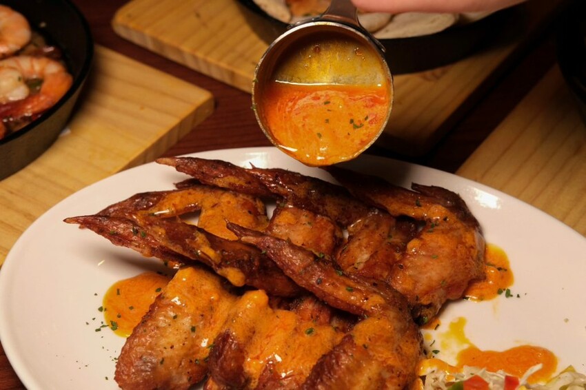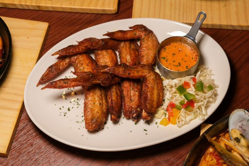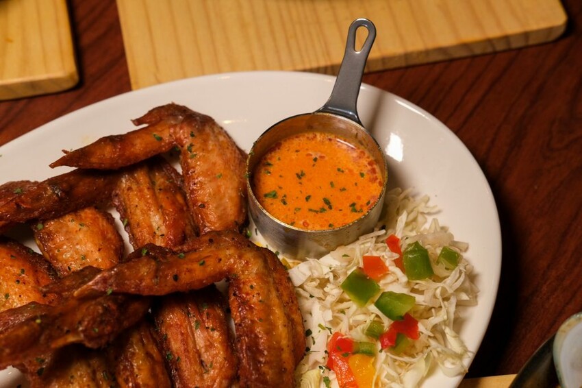 ▼很適合配酒的辣味炸雞翅,在雞翅中融入現今料理界當紅的Cajun辛香料,增添一股原木現烤的獨特香氣,肉質多汁不乾柴,搭配香辣帶勁的美式水牛城雞翅沾醬好夠味。
