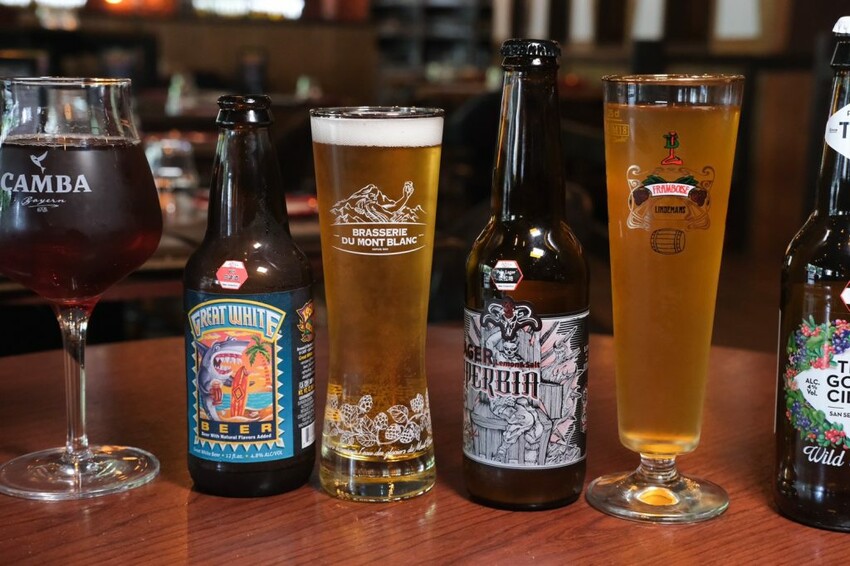 ▼幾乎全世界的精釀啤酒在這裡都能喝到,可以依照喜好挑選喜好的口味類型,人氣很高的女皇爵巧克力櫻桃黑啤酒,酒體呈柔和的琥珀色,入口可以喝到大量櫻桃香和巧克力風味;淡金色的迷情海岸大白鯊小麥白啤酒,在嘴裡散發少許草本和麥芽味,後段有少許的柑橘香很順口;不朽精釀 傲慢 檸檬海鹽拉格喝得到新鮮檸檬皮及海鹽香,擁有令人無法抗拒的過癮感,喜歡甜的則推薦伊媧莓果西打酒,在嘴裡散發輕盈莓果香及溫和的花香,尾韻出現蘋果與焦糖風味,很適合女孩們享用。