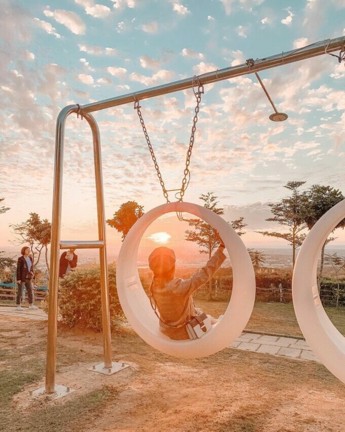 喜愛看夜景、與眺望飛機起落的你,絕對要安排來大古山登山步道走走,除了貼心設計地障礙步道,更種植野百合花卉造景、步行五分鐘即可抵達至高點休憩觀景涼亭,遠眺即是桃園主要景點:桃園國際機場、竹圍漁港、蘆竹發電廠等。