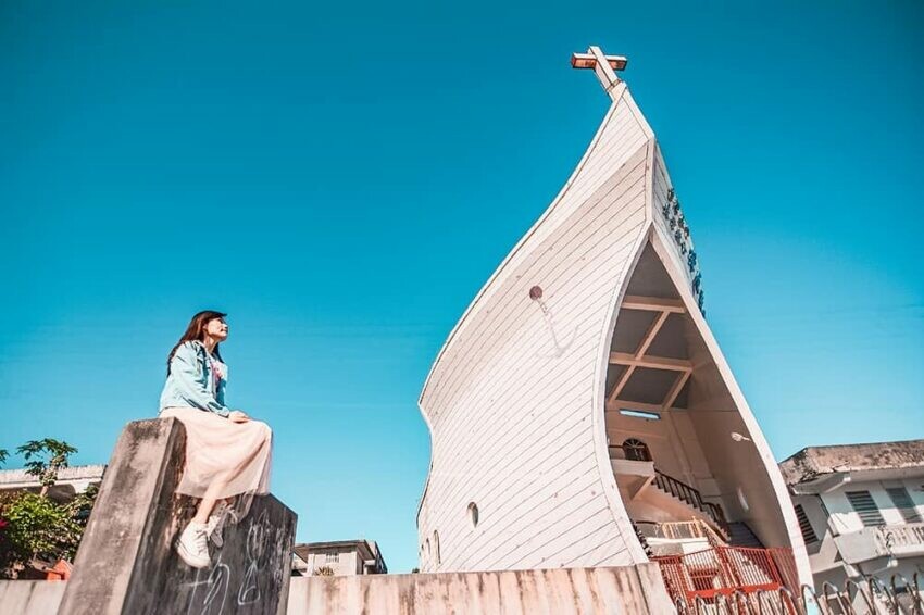 樟原長老教會原本因為颱風被損毀,後來以帆船造型為主題整修,用白色的木板去建造,船身上還畫有船錨與海浪,仿佛聖經中「諾亞方舟」的情景在台東長濱鄉再現。樟原教會共有三層樓高,是當地原住民的聚會場所,平時是不開放入內的。從教會的側面望去,可以看到不遠處的海洋翻騰著,真的很有大船入港的感覺呢。
