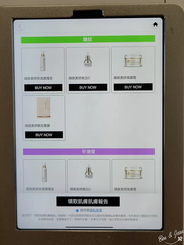 經過前面的膚質偵測,當然就可以來挑選適合自已的保養品囉