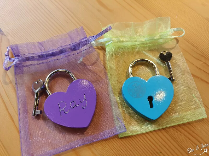 這個愛心鎖DIY 最簡單了,只要拿電動雕刻筆,直接在鎖面寫上字樣,或畫個圖形就完成了