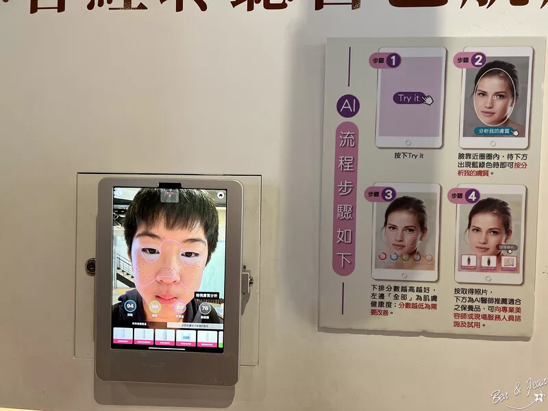 嘿嘿,赫蒂法莊園最有意思的就是檢測肌膚年齡的互動式體驗了