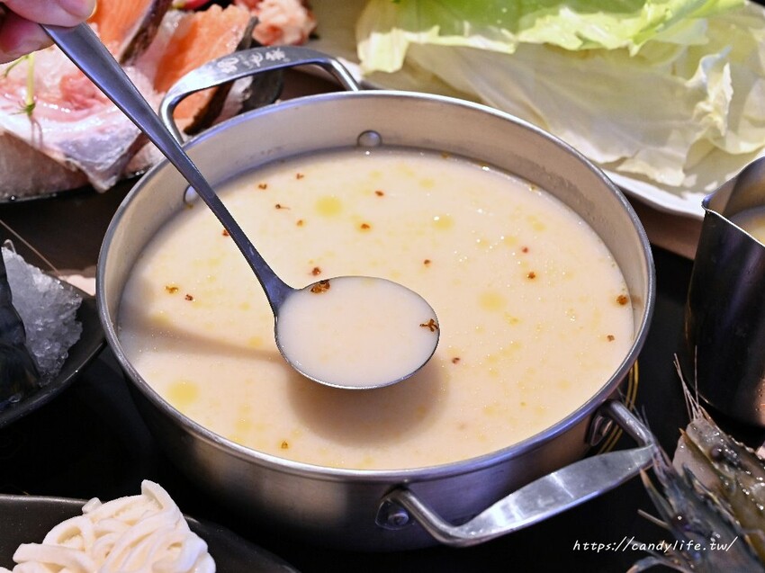 一般外面都是牛奶鍋或麻奶鍋,糖糖第一次看到桂花牛奶的湯底還挺特別的呢,採用鮮奶及鮮奶油熬煮而成的牛奶湯頭,再加入桂花增添香氣,讓香濃的牛奶湯底尾韻喝起來帶有淡淡的桂花香氣