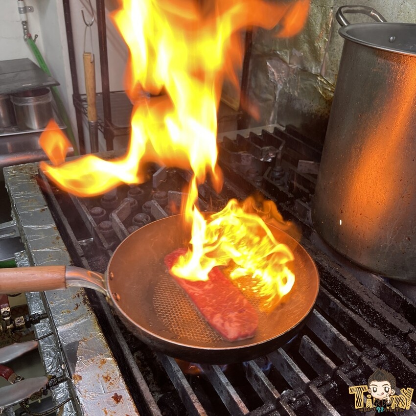 大火煎烤的牛排,伴隨誘人的香氣,光看就讓小米口水流個不停 XD