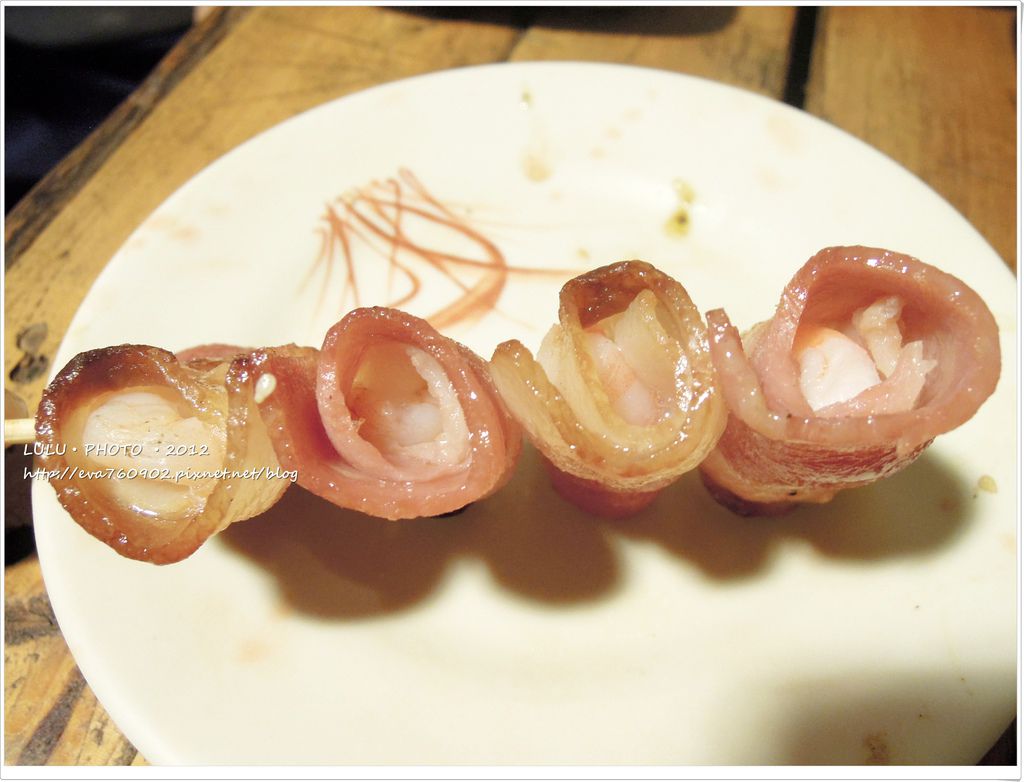 一口就海陸兩吃,先咬到外面培根的肉質的韌性,再咬到內部蝦仁脆脆的口感,