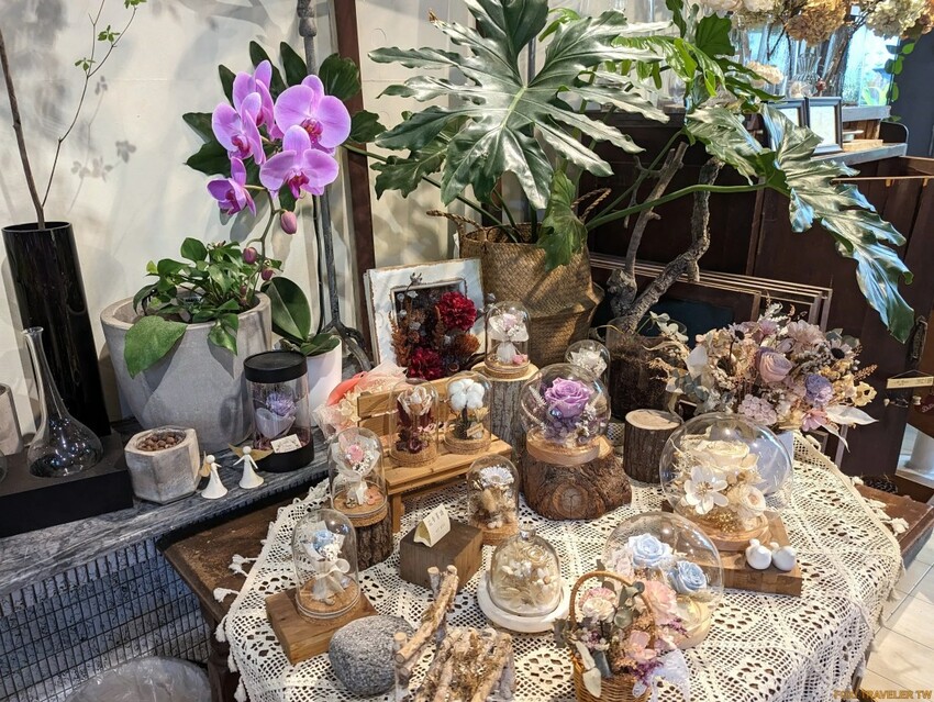 除了鮮花等材料之外,這裡還有各式各樣的展示品,展示品十分有藝術感,每一樣都很有特色,可以感受到設計者的用心。