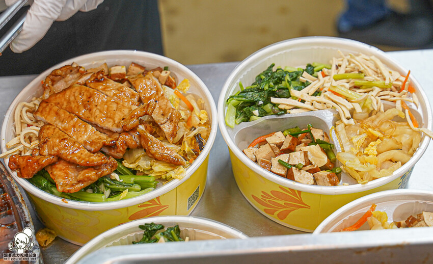 每個餐盒便當都還有四款配菜,每天都會有例湯供應,湯可免費自取