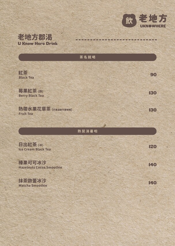 飲品的選擇也不少,有義式咖啡、歐蕾系列、可可、茶、冰沙和泡泡飲