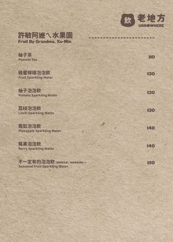 老地方咖啡Uknowhere Café_菜單
