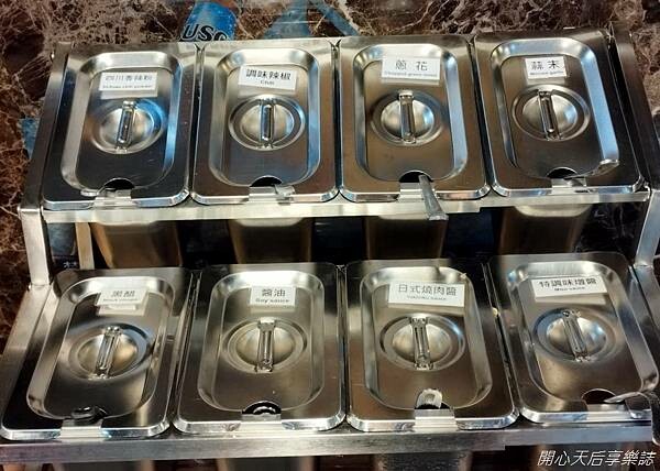 醬料區,有多款辛香料及沾醬,都有蓋子蓋住,比較衛生