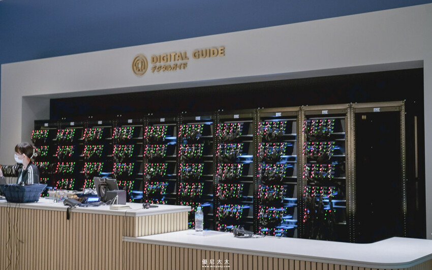 畢竟是在日本境內的影城,主要語言還是以日文為主,包含互動區的工作人員也是說日文,但是別擔心,其實從工作人員的肢體語言,也可以大致理解他們想表達什麼,另外,大門旁邊的語音租借系統,目前只有提供『日文』及『英文』兩種語言,中文的部分還要再緩緩。