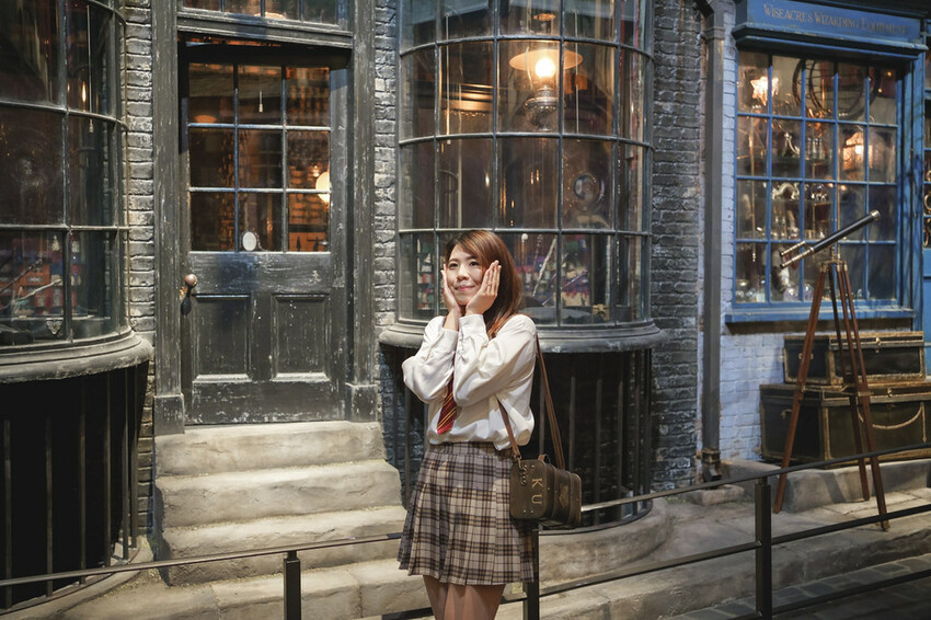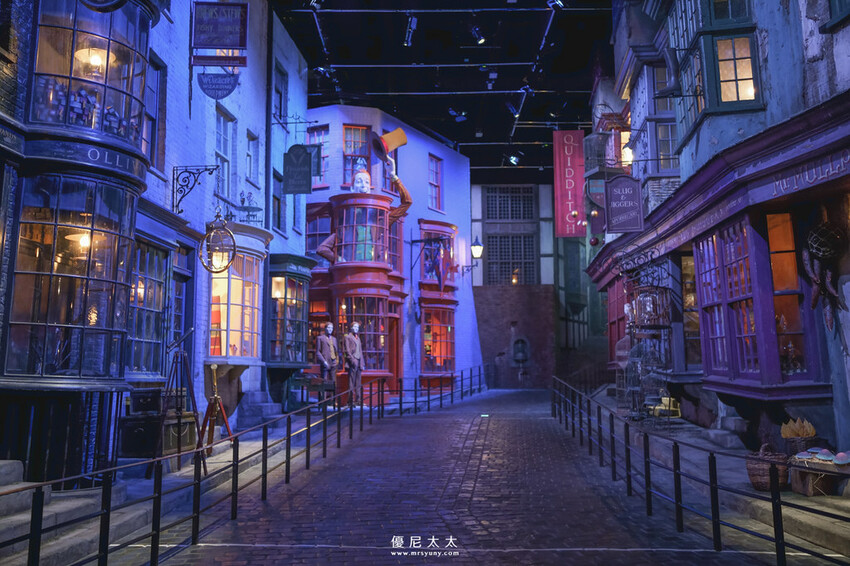 號稱可以滿足任何巫師或女巫需求,想買什麼都能找到的「斜角巷」,絕對是必拍場景之一,對於波特迷來說,實際看到妖精管理的「古靈閣銀行」、放置了超過1萬7千個魔杖箱的老店舖「奧利凡德魔杖店」、調皮搗蛋的「衛氏巫師法寶店」及買到嘿美的「咿啦貓頭鷹商場」等等,絕對是會有著滿滿感動,記得!斜角巷有兩個版本可以拍攝喔,白天和夜晚有著不同韻味。