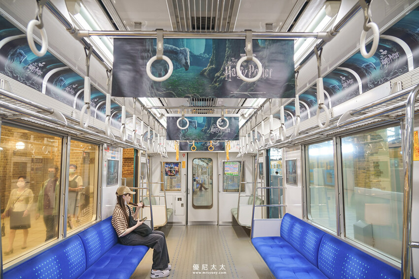 可以發現,要前往哈利波特影城,基本上是以『池袋』站為主要中繼站,搭乘15分鐘的西武池袋線就可以抵達,所以官方非常厲害的將『池袋』及『豐島園』站打造成滿滿哈利魔法風格,連行駛的列車也是限定款,車次還蠻頻繁的,幾乎是兩台列車就可以迎接一台限定款,而這個車廂改造目前只有在東京才有出現的喔!波特迷記得要多留一點時間給車站,也很好拍呀!