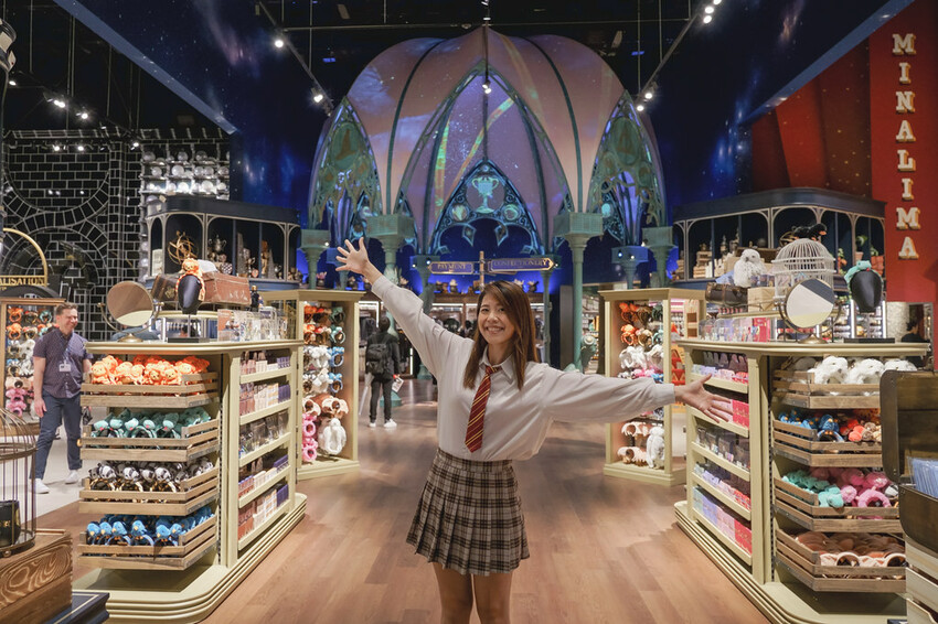 身為全世界最大的哈利波特商店,不管你是不是哈利波特迷,只要踏進去就如同被擊中魔法一樣,深陷不已!不誇張,包含拍照的時間,我自己也快逛了一個小時才出來,琳琅滿目的魔杖可以挑選,甚至還有專人為你解說每個魔杖的功用及建議,若是現場購買魔杖,還可以加錢印字,帶進園區拍照。另外,其實整個哈利波特商店就就像是一個魔法屋一樣,細緻到令人驚訝的裝潢,儼然就像一個小型魔法博物館,尤其是魔杖區的互動區,握上魔杖就可以顯示這個魔杖主人是誰,非常有趣!當然,商店裡面還有許多東京限定的商品,想要挑伴手禮的旅人,千萬不要錯過這個商店
