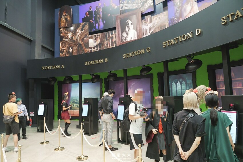 → 一次八個人進場,分成史萊哲林及葛蘭芬多的加油隊,隨著工作人員的指示歡呼、噓聲、驚訝!然後再藉由剪輯的方式,把畫面與電影連結成一段影片,一群朋友去玩,會非常high喔~