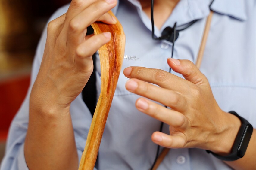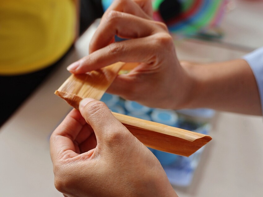 老師一個步驟一個示範,巧手就把月桃葉變身。