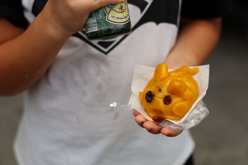 瞧瞧安東的皮卡丘,蒸熟後怎麼有點走鐘了!但外型不是重點,最重要的是老闆調的餡料有夠厲害,每個人都讚不絕口!