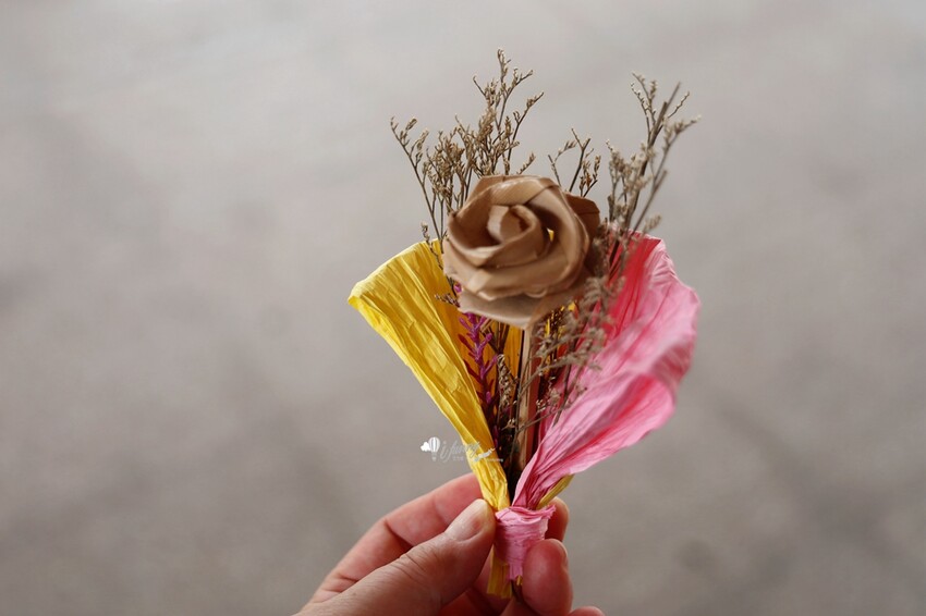 體驗課程附有一個花材包,有乾燥包及色紙。
