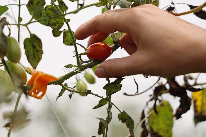 老闆指導我們連同蒂頭一起採下,如此可以令番茄保存得比較久。