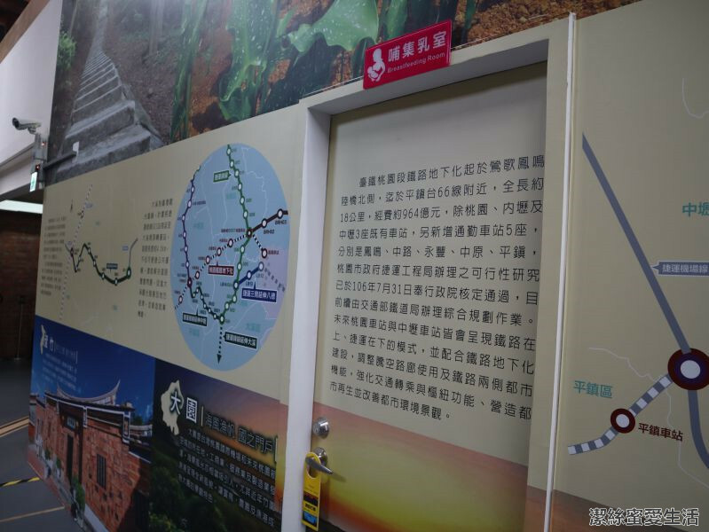 牆上都貼著軌道相關歷史,這一區的是關於捷運,還有互動連線機台能看到目前正在施工中的捷運狀態及各個站點;當然育嬰室也是不可少,這已是室內親子展館的標配了,身為一個母親總是會特別在意這個XD,雖然孩子現在已經大了用不著,提供給其他媽咪們參考。