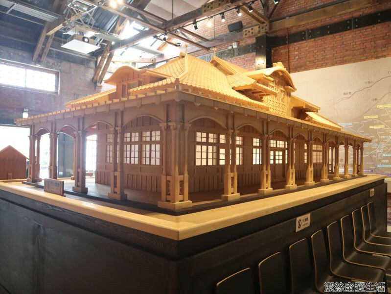 首先會看到日治時期的桃園車站,是木框架建築,相當精美,以1:5的比例建造,重現當年的桃園驛。