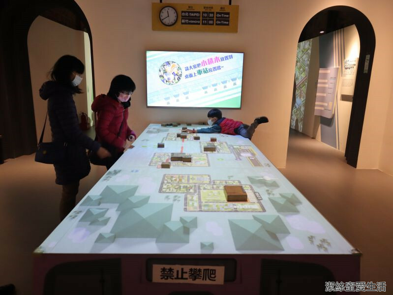 車長體驗的旁邊是光影積木城市,一樣是互動遊戲,按照螢幕操作,將大小積木擺在適合地方就完成任務囉。