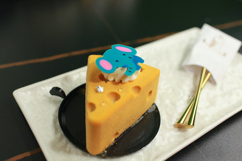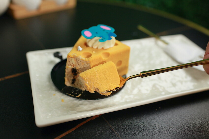 這特殊起司造型甜點,是結合巴斯克乳酪蛋糕創意甜點,融合泰式奶茶慕斯。