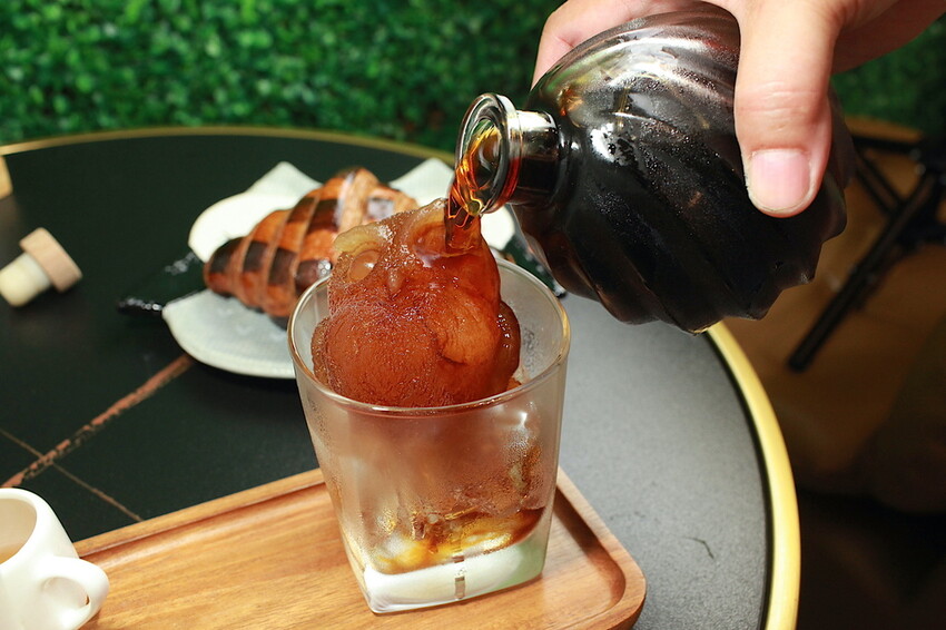 這濃巧克力可頌90元與夏威夷Kona冰滴咖啡200元。
