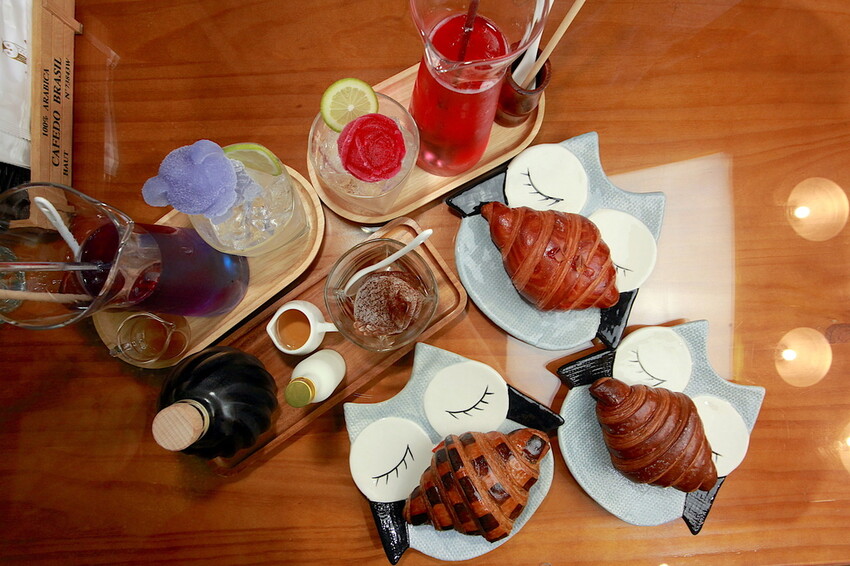 我們今天總共3位前來用餐,先點招牌可頌與飲品來享用。
