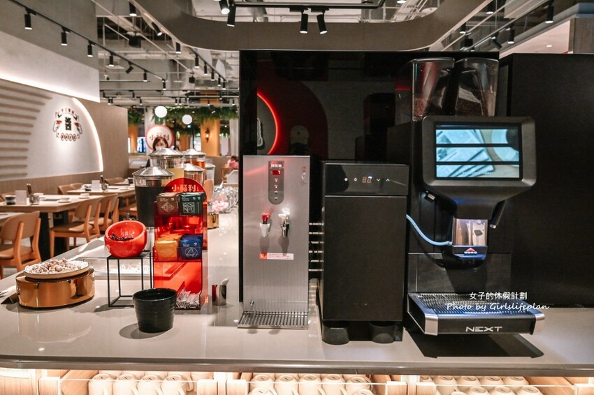 飲料區也超澎派有咖啡、拿鐵、茶都有提供,腰果都可以拿來配。