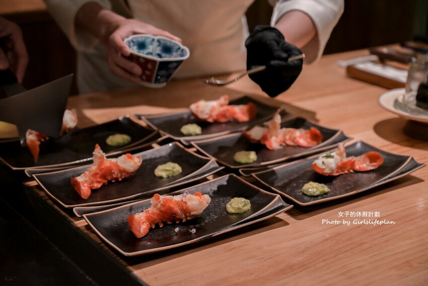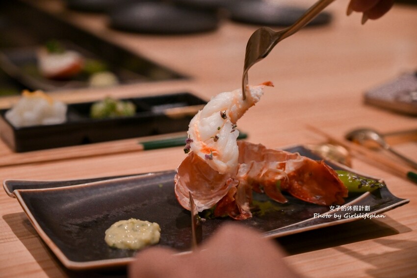 龍蝦帶著日本鹿兒島赤猿燒酎炙淡淡地瓜香氣,肥美飽滿的龍蝦肉咬起來有夠Q彈脆口。