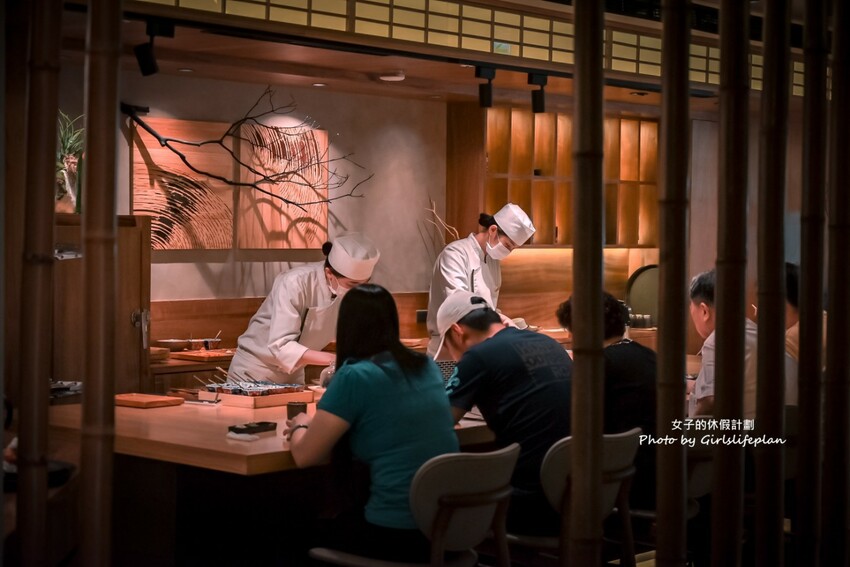 整體裝潢以木質打造雅致空間,每一桌一桌隔開用餐有沉穩低調感,也有半包廂式的鐵板料理區,師傅會在現場展示一道又一道令人驚豔的料理,缺點就是只有32個座位區,晚餐或假日比較熱門建議先訂位比較保險喔。