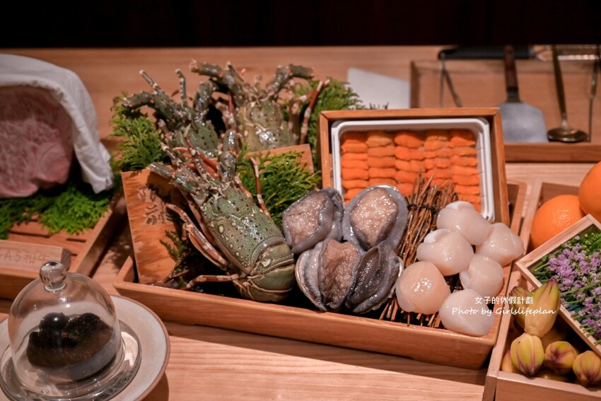 日本A5和牛、龍蝦、鮑魚、海膽、干貝等高級奢華海鮮等等要料理的菜品都會放在桌上供客人欣賞。