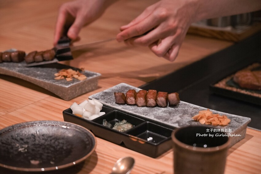 熟度可以選擇三分熟五分熟或七分熟,建議推薦是選五分熟搭配松露蒜片和雪鹽,真不愧是日本A5和牛滿嘴油香在嘴中肆意爆開,根本就像直接喝了一碗肉湯有夠浮誇,肉一咬就化開來了,肉汁鮮甜又很軟嫩吃在嘴中有夠幸福。